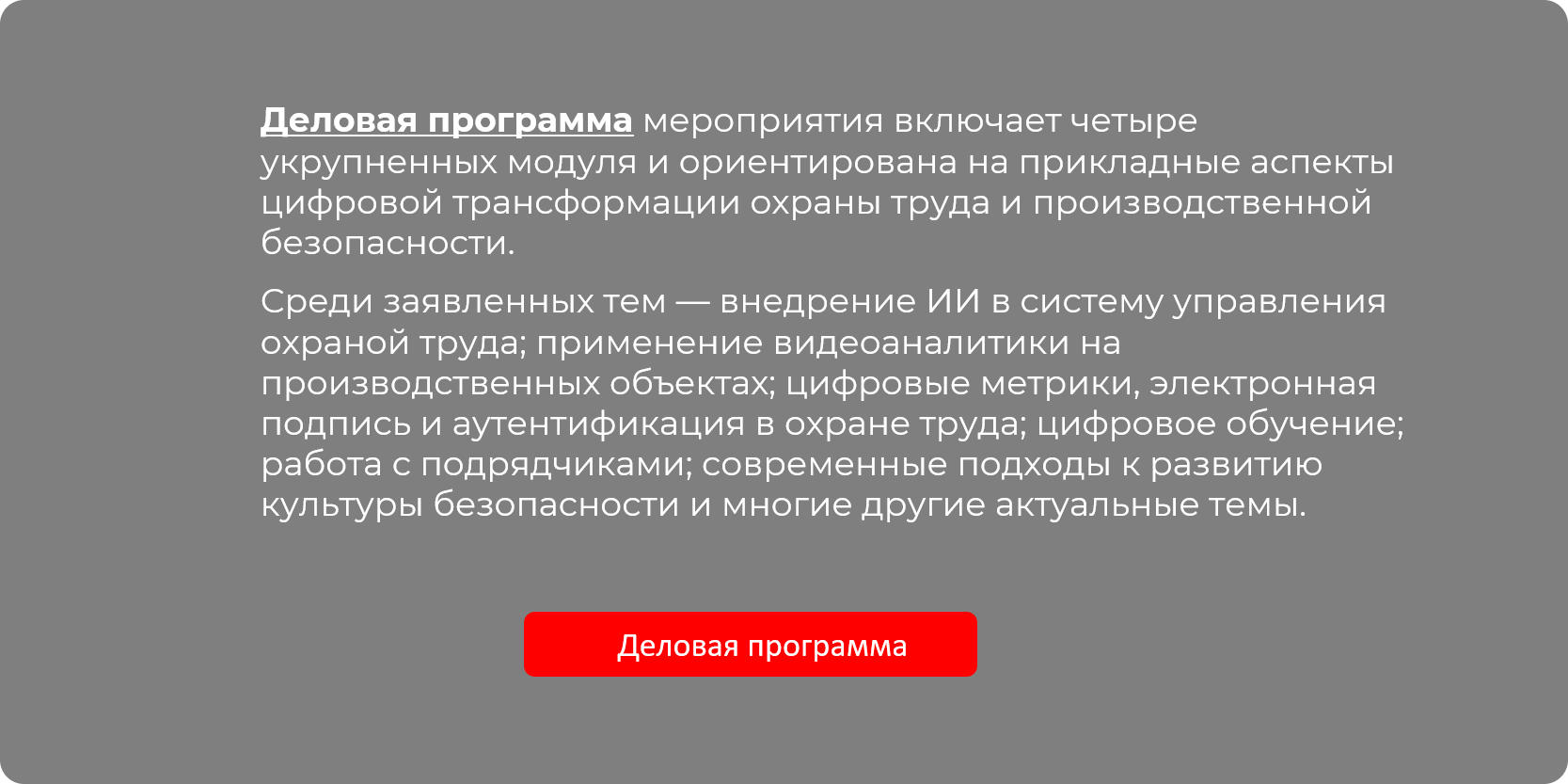 МИФОТ-26 объединяет проверенные технологические решения и реальные запросы промышленности. Форум дает возможность бизнесу оценить готовые инструменты для снижения травматизма и усиления ESG-позиций, специалистам в области охраны труда и производственной безопасности — получить актуальные знания и методы для внедрения, а разработчикам — найти партнеров для пилотных проектов.