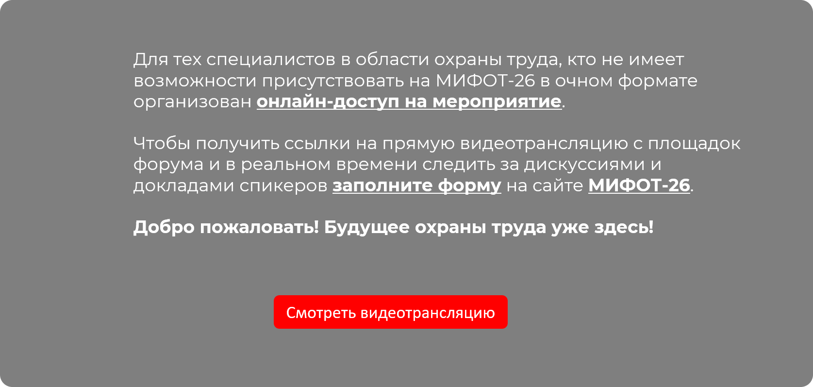 Бесплатная видеотрансляция мероприятий МИФОТ-26: будущее охраны труда — уже здесь!